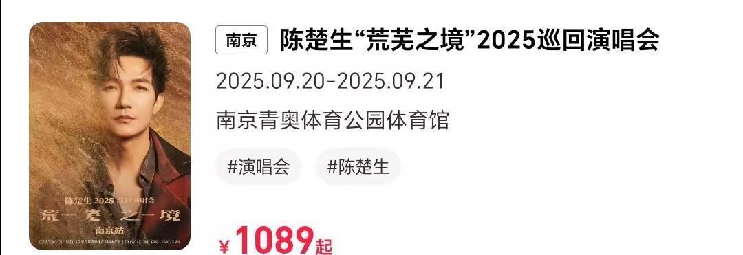 当今陈楚生正在举办的个东说念主演唱会是南京青奥体育公园体育馆演唱会,当今的票价在二级平台是处于溢价现象的,进展还可以。