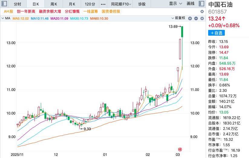就在前几日,受到地缘时局、供需步地等多重身分影响,中国石油、中国石化、中国海油集体大涨。