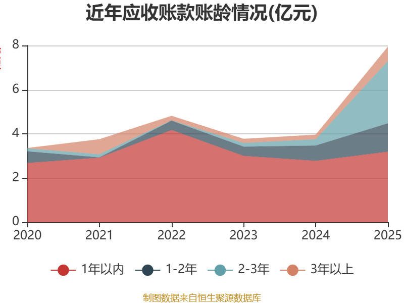 从应收账款账龄结构来看,阻挡2025年末,公司账龄在1年以内的应收账款余额为3.19亿元,较上年末增长4098.08万元,占应收账款总和比例为40.17%,较上年末下落30个百分点。